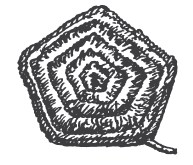 Пятигранник. Выполняют вязание так же, как при вывязывания квадрата, прибавляя в каждом ряду по 2 столбика, но кольцо из воздушных петель делят не на 4, а на 5 частей. Для удобства расчета цепочку надо связать из 5-ти или 10-ти воздушных петель (рис. 68).