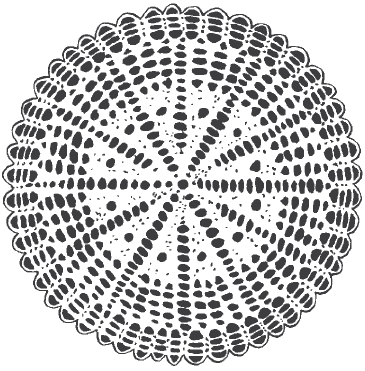 Следующий узор обвязывания подходит, например, для тонких носовых платков или нижнего белья. Называется он оборка из «ракушек» и вывязывается полустолбиками с накидом и столбиками без накида между ними (рис. 63).