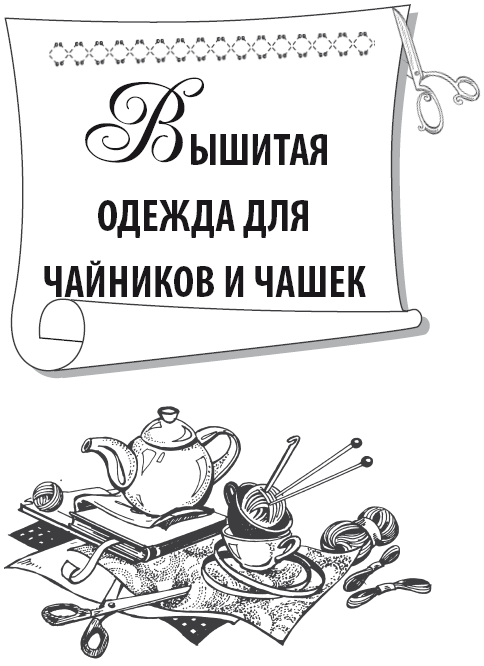 Вышивка крестомЭтот вид вышивки идеально подходит для украшения одежды для чайников и чашек. Мастерицы с опытом создают очень красивые сложные узоры, которыми они украшают свои изделия. Без преувеличения можно сказать, что получаются настоящие маленькие шедевры, прекрасно вписывающиеся в интерьер кухни.