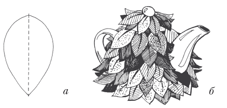 9. Пришейте таким способом все оставшиеся листочки, начиная снизу (рис. 99, б).