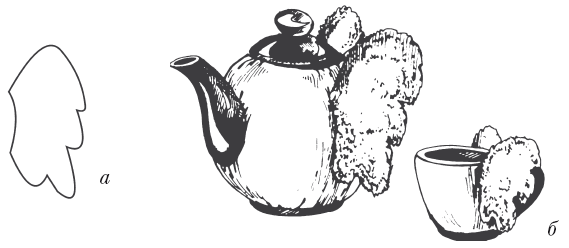 6. Выкроите по две детали-крыла на чашку и чайник. Высота деталей для чашки должна быть примерно равна высоте чашки, то же – для чайника (рис. 104, а).