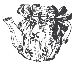 Шарообразный чайник, ткань средней плотности с цветочным рисунком, бельевая резинка шириной 1 см, атласная лента шириной 5–10 мм в тон с фоном ткани, нитки в тон фону ткани, нитки контрастного цвета для временных швов, бумага, маркировочные инструменты, игла, булавки, сантиметровая лента, линейка, ножницы, швейная машина.