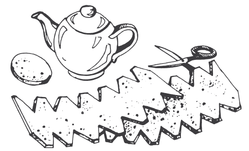 1. Подготовьте утеплитель для стенок чехла, сделав необходимые замеры чайника. Затем вырежьте боковые стенки из 2–3-х деталей. Для придания утеплителю желаемой формы сделайте надрезы, они облегчат выполнение сгибов. Из держателя формы для обуви вырежьте круглую, по размеру донышка, подставку под чайник (рис. 113).