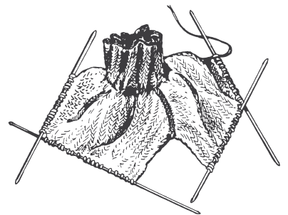 Рисунок 117. Вязание верхней детали грелки на 5-ти спицах