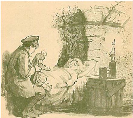 Об умирающих в подвалах детях, с самого начала жизни почувствовавших все ужасы жуткой нищеты, о непередаваемом отчаянии взрослых, их родителей, пишет Куприн в рассказах «Чудесный доктор» и «Детский сад». Ни с чем не сравнимое, бедственное положение детей лишает их подчас даже воздуха, и маленькая Сашенька, увядающее жалкое создание, напоминает «чахлую травинку в расщелинах старых каменных построек». «Ах, если бы нам воздуху, воздуху», – в муках восклицает Сашенькин отец, работающий писцом в сиротском суде. За образом его Сашеньки ему видятся «бледные личики многих сотен других детей, задыхавшихся, подобно его дочери, в подвалах и на чердаках» («Детский сад»).