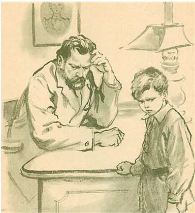 Так начинается неравный поединок, где, чем сильнее становится угроза насилия, тем на все требования: «Нет, скажешь!» – следует доходящий до шёпота, но непреклонный ответ: «Нет, не скажу… никогда, никогда не скажу вам… Ни за что!», хотя мальчик чувствовал: если произойдёт насилие, разобьётся, быть может, самое дорогое – любовь, которую он всё ещё испытывал к отцу. Этот эпизод как нельзя более полно говорит, как повзрослело сердце мальчика, как обогатило его знание чужого страдания. Ему страшно, но он понимает, что будет действовать только по одному закону – закону справедливости.