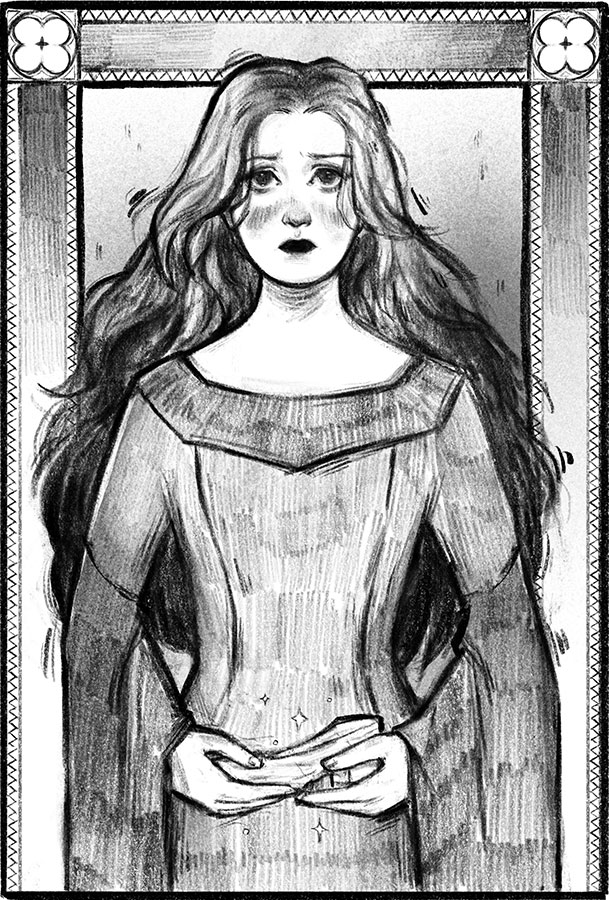 Мой барон печалился, что я не могу подарить ему наследника, но принял моего сына и дочерей, как родных. И всё же любимицей его осталась дочь от первого брака, прекрасная, как бледная весенняя заря. Её мать была ещё прекраснее; говорили, что в ней течёт кровь фейри, но мой барон не пал жертвой её красоты. Брак их стал плодом разума, а не сердца, жена была с ним холодна, а год спустя умерла при родах, оставив после себя лишь горстку воспоминаний, орешник, проросший над её могилой, и синеглазую белокурую девочку.