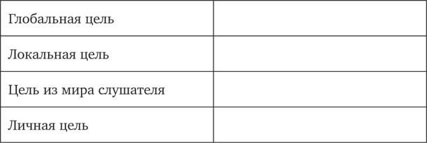 Давайте закрепим схему работы с целью выступления.
