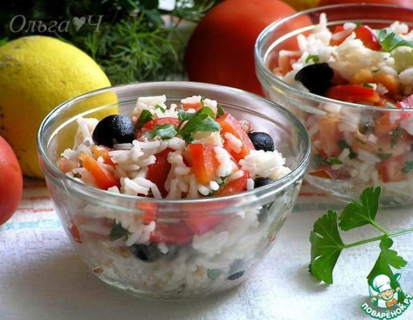 Теплый салат с рисом