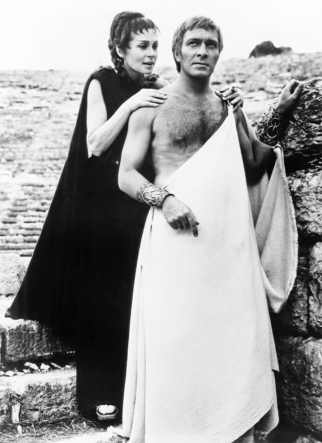 Лилли Палмер и Кристофер Пламмер демонстрируют элегантность греческой одежды в фильме «Царь Эдип», 1968 год.