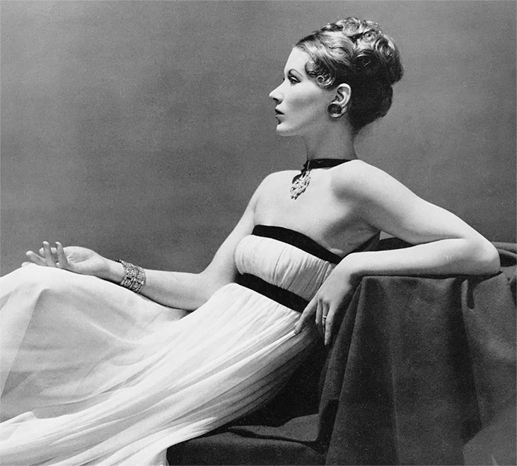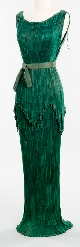 Вдохновленный греческими драпировками, Мариано Фортуни в 1907 году создает «Дельфийское платье» (а также его вариант, состоящий из отдельных верха и низа, названный им «Пеплос»). Наряд был элегантным и соотносился с целями Движения за рационализацию платья (6). Его нарядные платья из шелка в мелкую гофрировку, которые надевали к чаю и часто подвязывали на талии тонкими шелковыми шнурками, выглядят так современно, что трудно поверить, будто им более сотни лет.