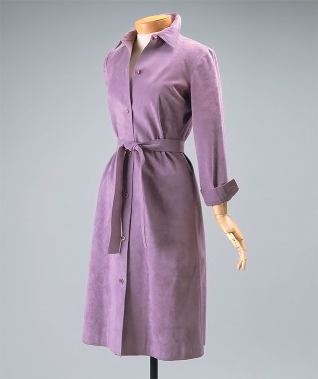 Легендарное платье-рубашка Хэлстона из синтетической замши, 1973 год.