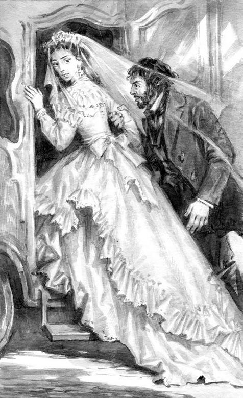 Венчание назначено было в восемь часов пополудни; Настасья Филипповна готова была еще в семь. Уже с шести часов начали мало-помалу собираться толпы зевак кругом дачи Лебедева, но особенно у дома Дарьи Алексеевны; с семи часов начала наполняться и церковь. Вера Лебедева и Коля были в ужаснейшем страхе за князя; у них, однако, было много хлопот дома: они распоряжались в комнатах князя приемом и угощением. Впрочем, после венца почти и не предполагалось никакого собрания; кроме необходимых лиц, присутствующих при бракосочетании, приглашены были Лебедевым Птицыны, Ганя, доктор с Анной на шее, Дарья Алексеевна. Когда князь полюбопытствовал у Лебедева, для чего он вздумал позвать доктора, «почти вовсе не знакомого», то Лебедев самодовольно отвечал: «Орден на шее, почтенный человек-с, для виду-с», – и рассмешил князя. Келлер и Бурдовский, во фраках и в перчатках, смотрели очень прилично; только Келлер всё еще смущал немного князя и своих доверителей некоторыми откровенными наклонностями к битве и смотрел на зевак, собиравшихся около дома, очень враждебно. Наконец, в половине восьмого, князь отправился в церковь, в карете. Заметим кстати, что он сам нарочно не хотел пропустить ни одного из принятых обычаев и обыкновений; всё делалось гласно, явно, открыто и «как следует». В церкви, пройдя кое-как сквозь толпу, при беспрерывном шепоте и восклицаниях публики, под руководством Келлера, бросавшего направо и налево грозные взгляды, князь скрылся на время в алтаре, а Келлер отправился за невестой, где у крыльца дома Дарьи Алексеевны нашел толпу не только вдвое или втрое погуще, чем у князя, но даже, может быть, и втрое поразвязнее. Подымаясь на крыльцо, он услышал такие восклицания, что не мог выдержать и уже совсем было обратился к публике с намерением произнести надлежащую речь, но, к счастию, был остановлен Бурдовским и самою Дарьей Алексеевной, выбежавшею с крыльца; они подхватили и увели его силой в комнаты. Келлер был раздражен и торопился. Настасья Филипповна поднялась, взглянула еще раз в зеркало, заметила, с «кривою» улыбкой, как передавал потом Келлер, что она «бледна как мертвец», набожно поклонилась образу и вышла на крыльцо. Гул голосов приветствовал ее появление. Правда, в первое мгновение послышался смех, аплодисменты, чуть не свистки; но через мгновение же раздались и другие голоса: