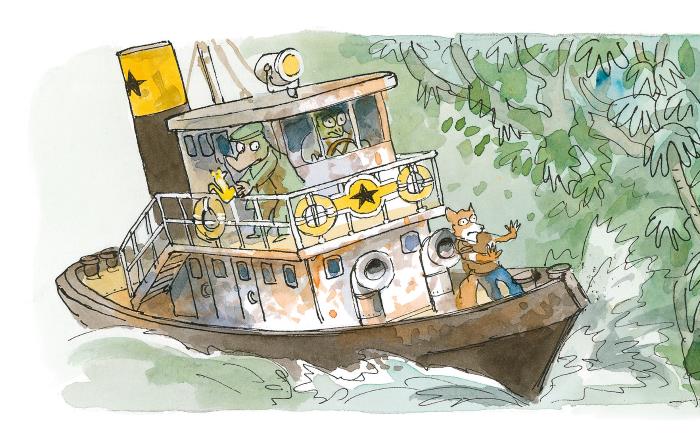 – Конечно, сказал, котпитан! Полицейские преградили им путь, поэтому похитители развернулись и плывут теперь вверх по реке.
