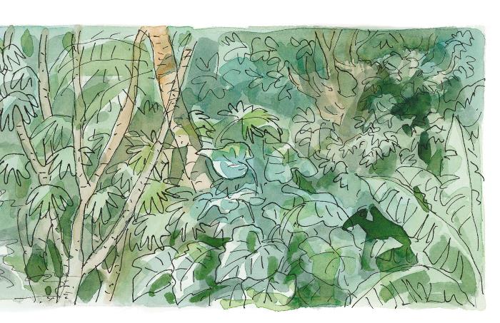Кусты и деревья сплетались над водой так густо, что пироги впереди не было видно. Спиди и Бульон гребли изо всех сил. Вдруг откуда-то из зелёных сумерек раздались тысячи тоненьких пронзительных голосов. Анастасия заткнула уши.