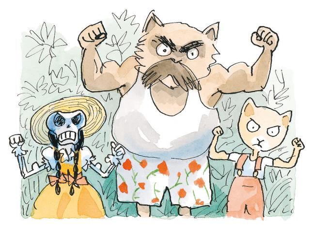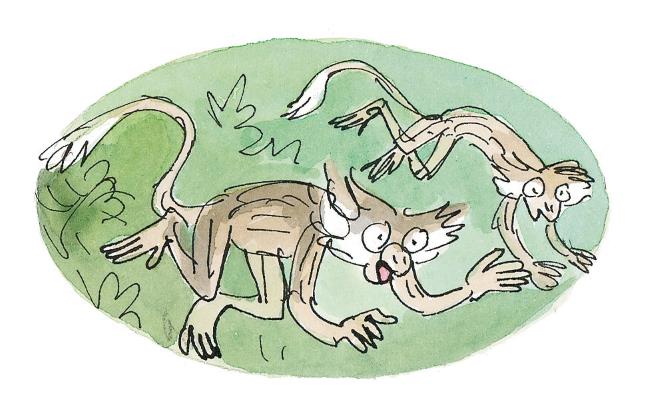 Лу как тореадор пошла на вожака обезьян. А когда он бросился на неё – оп-ля! – накинула платье ему на голову. Напрасно вожак дёргался и брыкался. Лу крепко держала его, словно кота в мешке.