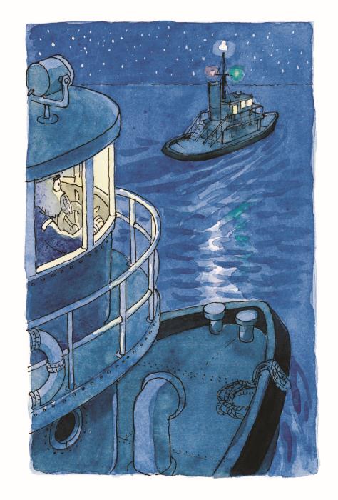 В тот момент, когда «Упрямый» покидал марсельский порт, мимо прошёл другой буксир. Его капитан с ухмылкой оглянулся через плечо. Это был Гедеон Недобрый, заклятый враг Бонифация. Оба судна двинулись, каждый своей дорогой, в открытое море. Когда стемнело, капитан Всехнаверх передал штурвал Аристиду МегаГерцу.