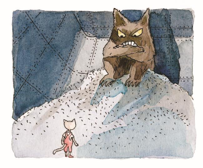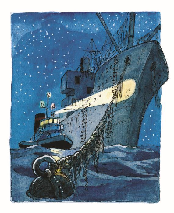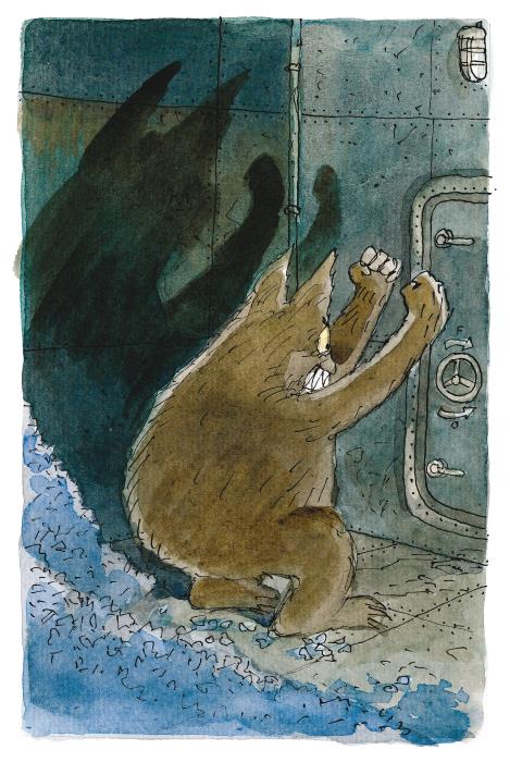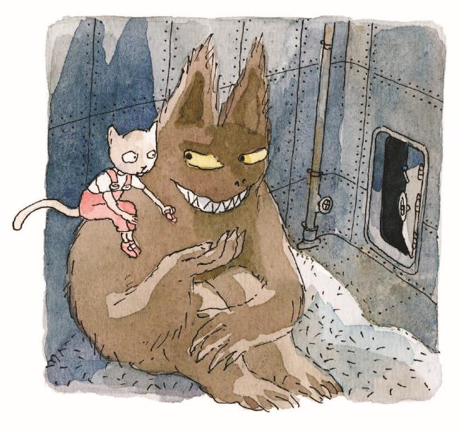В глубине трюма Лу обнаружила огромную гору. Это была гора разноцветного конфетти. На вершине сидело самое большое чудовище из всех, что ей довелось видеть. Оно нахмурилось, разразилось своим ужасным хохотом и бросилось на стену трюма: БЭ-Э-Э-ЭНГ!