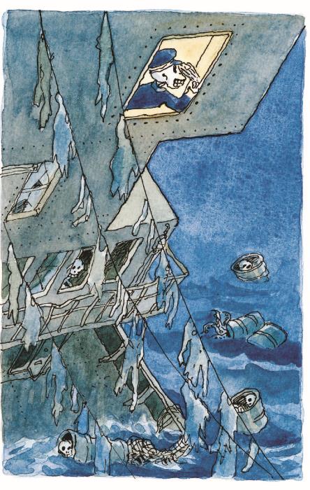 – Вот так я был разорён, – рассказывал маленький капитан. – Когда чудовище доело наш груз – всю пастилу и ириски, – оно страшно разозлилось. Оно чуяло сладкое за сто километров и заставляло нас причаливать к берегу и отнимать у торговцев шоколадные конфеты, сладкую вату, леденцы… Мы стали грозой побережья. Пляжи пустели при нашем приближении. Вскоре нам запретили входить в порты. Чудовище совершенно разъярилось! Тогда-то оно и начало хохотать и бросаться на стены. Днём и ночью. Мы потеряли сон и аппетит.