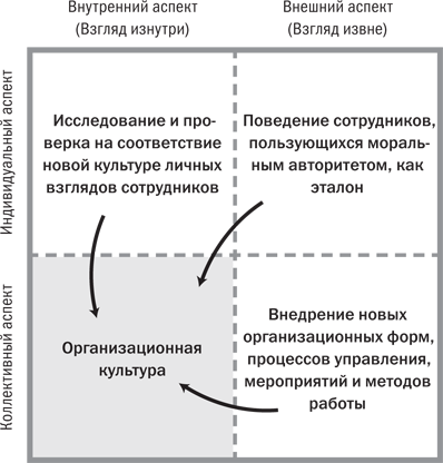 • Внедрить соответствующие организационные формы, процессы управления, мероприятия и методы работы (правый нижний квадрант).