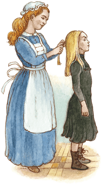 Если бы Марта была хорошо обученной, «настоящей» горничной, она была бы более почтительной и услужливой и знала бы, что ей полагается расчесывать волосы, застегивать башмаки, поднимать вещи и класть их на место. Но она была простая деревенская девушка, которая выросла в коттедже в степи с целой толпой братьев и сестер, которым и в голову не приходило, что можно чего-нибудь не делать самим и не ухаживать за младшими детьми, которые еще только учились ходить.