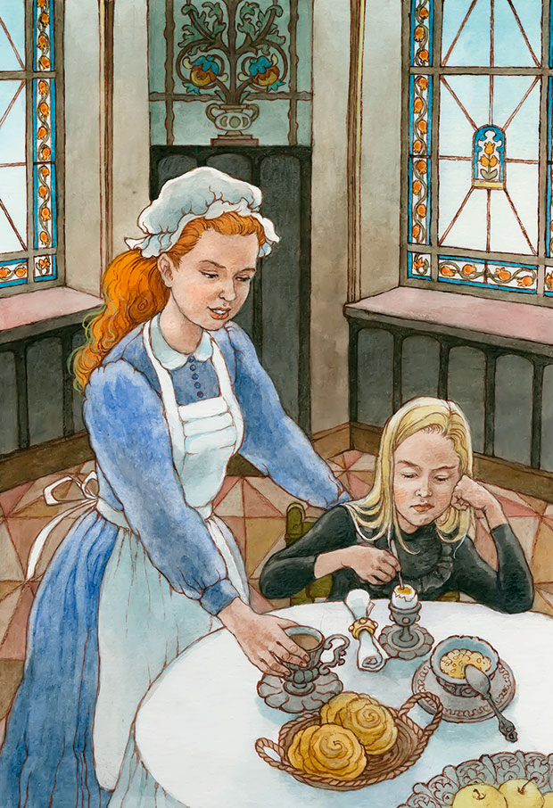 – А теперь, – сказала она, – ты лучше сиди, где приказано, не то тебя запрут. Мистер Крэвен должен взять тебе гувернантку, как обещал. За тобой надо строго присматривать, а у меня и так работы довольно.