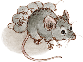 Мери осторожно подошла поглядеть. Блестящие глаза принадлежали маленькой серой мыши, которая прогрызла дыру в подушке и устроила там жилье. Возле нее лежало шестеро спящих мышат.