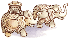 В одной комнате, похожей на дамский будуар, обои были бархатные, а в шкафчике стояло около сотни маленьких слонов, выточенных из слоновой кости. Все они были различной величины, и у некоторых на спинах были паланкины или погонщики. Мери видела такие вещички в Индии; открыв дверь шкафчика, она стала на маленькую скамеечку и начала играть ими. Когда ей это надоело, она расставила слонов в прежнем порядке и затворила дверь шкафчика.