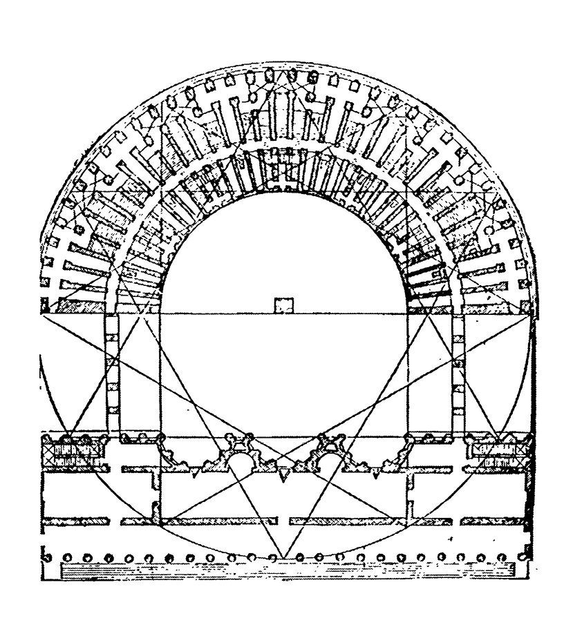 Ил. 9a. Реконструкция римского театра Палладио. Из трактата Витрувия De architectura cum commentariis Danielis Barbari, Венеция, 1567