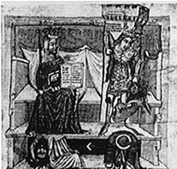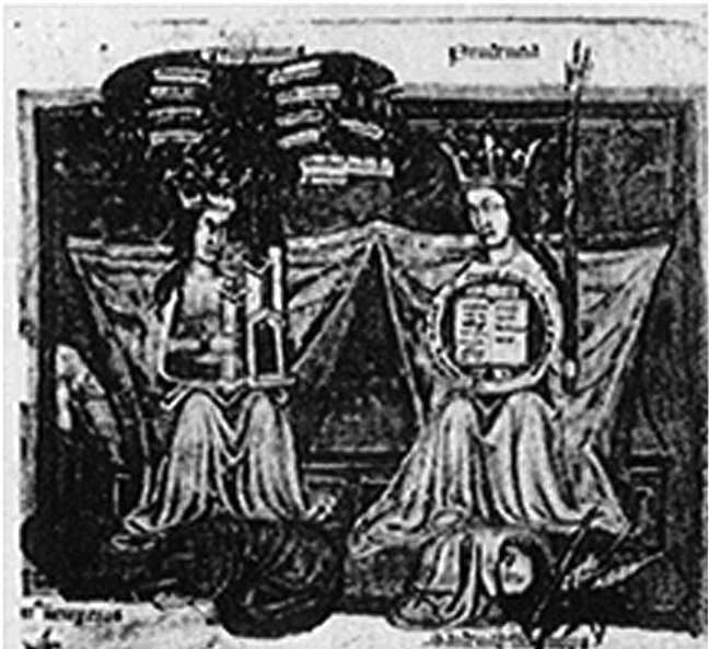 Ил. 4b. Справедливость, Храбрость. Из итальянской рукописи XIV века. Венская национальная библиотека (MS 2639)