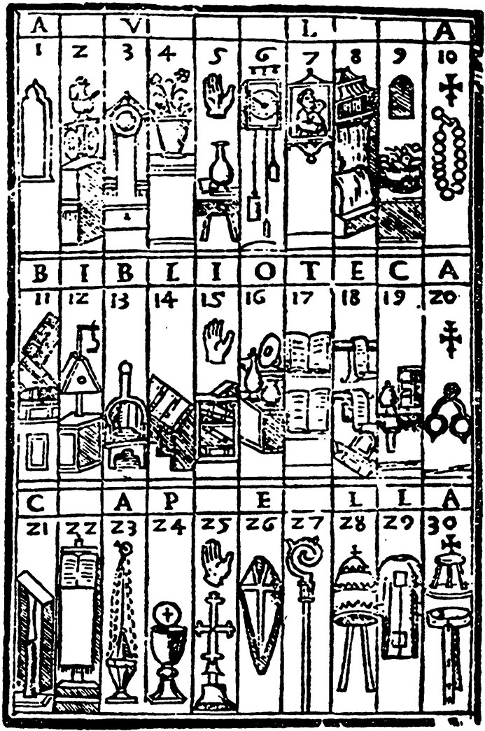 Ил. 13. Изображения, иллюстрирующие принципы искусства памяти. Из книги Агостино дель Риччо Arte della memoria locale, 1595, Национальная библиотека, Флоренция (MS. II, i, 13)