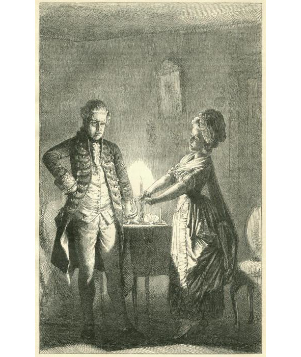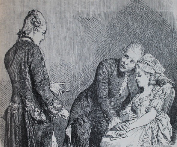 (бросает Луизе её письмо к маршалу; (Луиза развертывает письмо и, побледнев, как полотно, падает без чувств)