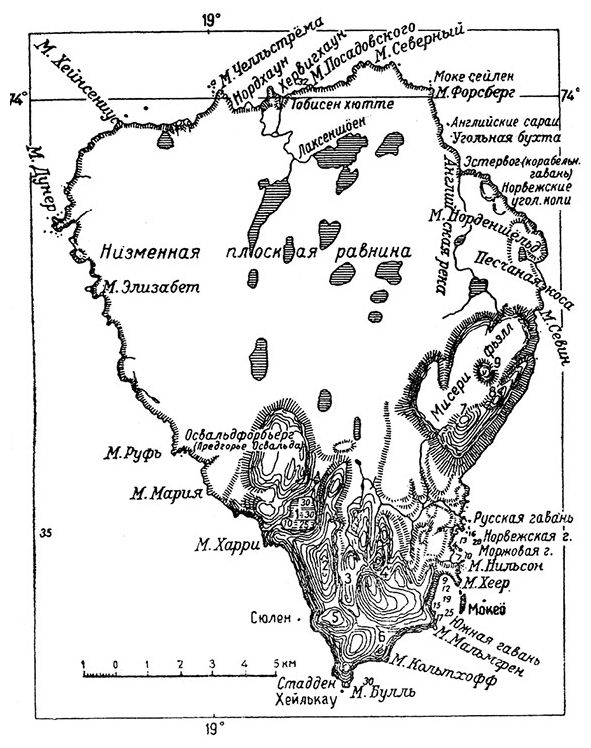 Наконец, следует упомянуть и норвежского геолога, доктора Улафа Хольтедаля, который провел на острове летом 1918 года пять недель, занимаясь изысканиями залежей угля по поручению Ставангерской угольной компании «Медвежий остров». Попутно ему удалось провести весьма ценные исследования геологического строения острова.