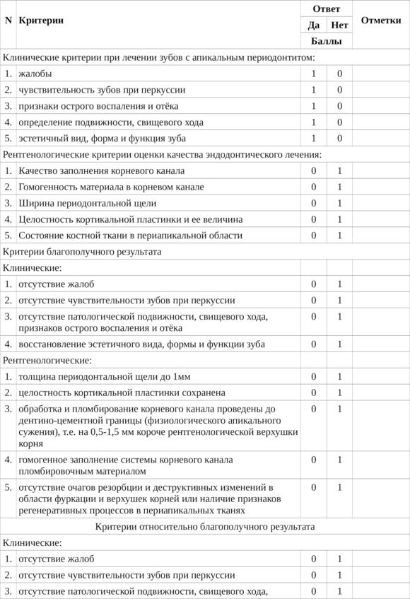 4. Критерии экспертной оценки качества проведённого медицинского амбулаторно-поликлинического обследования и оказанной специализированной помощи больным с апикальным периодонтитом – Модификация Флейшер Г. М. (2019)