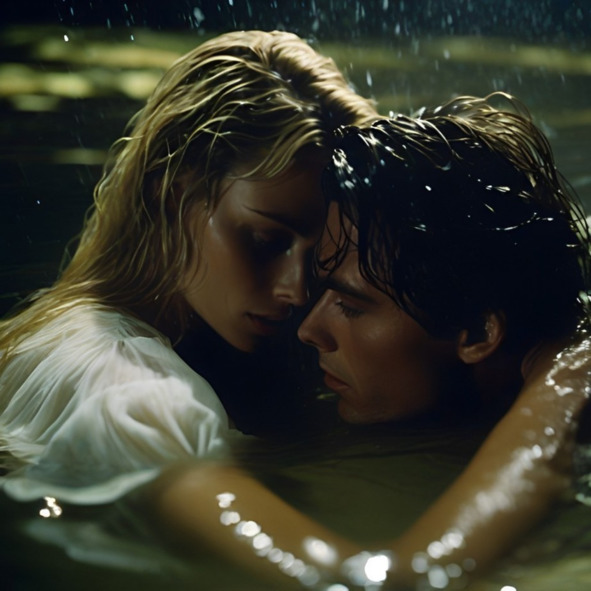 Посередине Волги Алексей отключил мотор. Я напряглась. Он встал во весь свой высоченный рост. Лодка покачивалась. Луна и звёзды освещали его лицо, и глаза горели отнюдь не голубым светом: они были тёмные и чужие. Он шагнул ко мне и сел рядом на дно лодки.