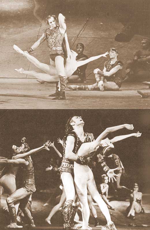 В первые недели постановочных репетиций «Спартака» Люда Бржозовская заболела, поэтому я работала с двумя партнерами по очереди: то с Володей Комковым, то с Юрой Трояном.