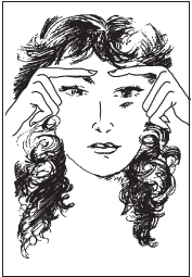 Расположить указательные пальцы на бровях; кончики пальцев направить к середине лба, остальные пальцы отогнуть назад, чтобы не ограничивать поле зрения во время упражнения. Пальцы сильно прижать.