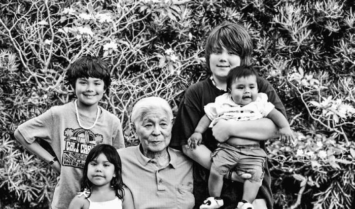 Дедушка Кавасаки со своими внуками. Слева направо: