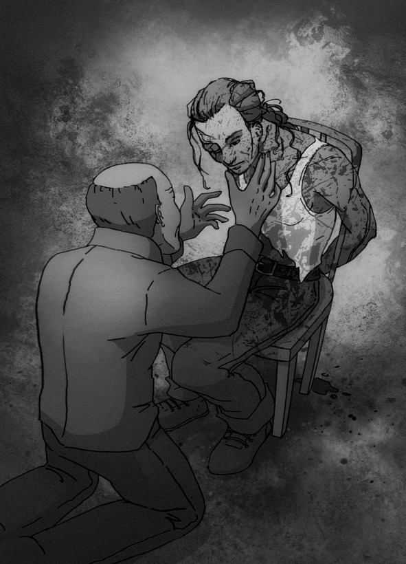 – Мы оба знаем, что мы ничего не сможем сделать. Уходи! – после этих слов Аркадий выполнил просьбу и обнял Филиппа, как своего родного сына, коим и считал его всю жизнь. От травм, полученных после пыток, объятия причиняли физическую боль, но так успокаивали душу. Филипп закрыл глаза и на миг представил, как здорово было бы сейчас оказаться дома на кухне, за столом рядом с мамой и Аркадием. Просто посидеть и поговорить ни о чем, увидеть на их лицах улыбки, слышать их голоса и провести так весь день! Аркадий уже не старался сдерживать слезы и негромко сказал: «Я понимаю и люблю тебя, сынок», – а после резко схватил за голову и одним рывком свернул своему пасынку шею. Опыт прошлых лет помог все сделать быстро и безболезненно для Филиппа, жизнь его оборвалась в мечтаниях и воспоминаниях о доме, о семье и о любви. Все так же обнимая бездыханное тело Филиппа, Аркадий издал крик душевной боли и скорби. «Что там происходит?», – кричал Федор. Послышался топот бегущих людей за спиной. Еще мгновение Аркадий смотрел на своего пасынка. «Словно спит мой мальчик», – промелькнуло в голове; затем, отпустив тело, он быстро схватил со столика небольшой нож и один из топоров, что был побольше, встал, развернулся и уверенно зашагал навстречу бегущим на него людям, спрятав оружие за спиной.