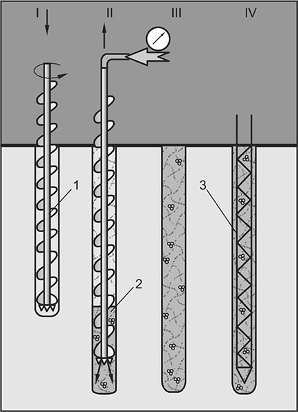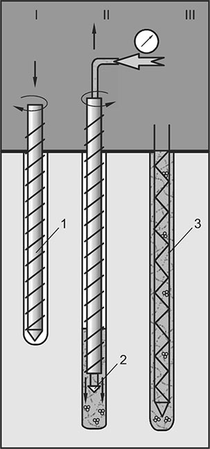 Рис. 3.10. Буроинъекционные сваи, технологическая схема устройства ГСС: