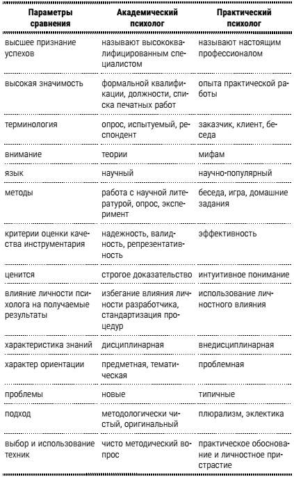 Обсудите с коллегой отличия практического психолога от академического: что вам ближе и почему (см. табл.).