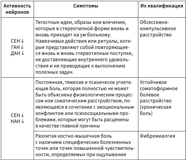 Примечание: СЕН↓ серотониновые нейроны, ГАН↓ гамкергические, НАН↓ норадреналиновые, ДАН↓ дофаминовые.