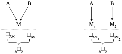 Кроме того, совершенно очевидно, что процесс, изображенный на второй схеме, сложнее, чем процесс, изображенный на первой; во всяком случае, он предполагает дополнительно процесс отождествления М1 с М2.
