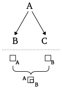 изображает практически проведенное разложение тела А на составляющие В и С,