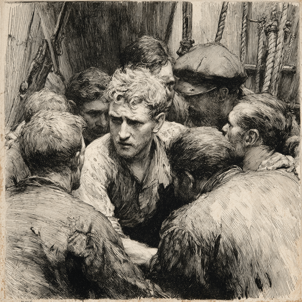 Каюта, в которой я очнулся, была маленькая и довольно грязная. Белокурый моложавый человек со щетинистыми, соломенного цвета усами и отвисшей нижней губой сидел рядом и держал меня за руку. С минуту мы молча смотрели друг на друга. У него были водянистые серые глаза, удивительно бесстрастные.