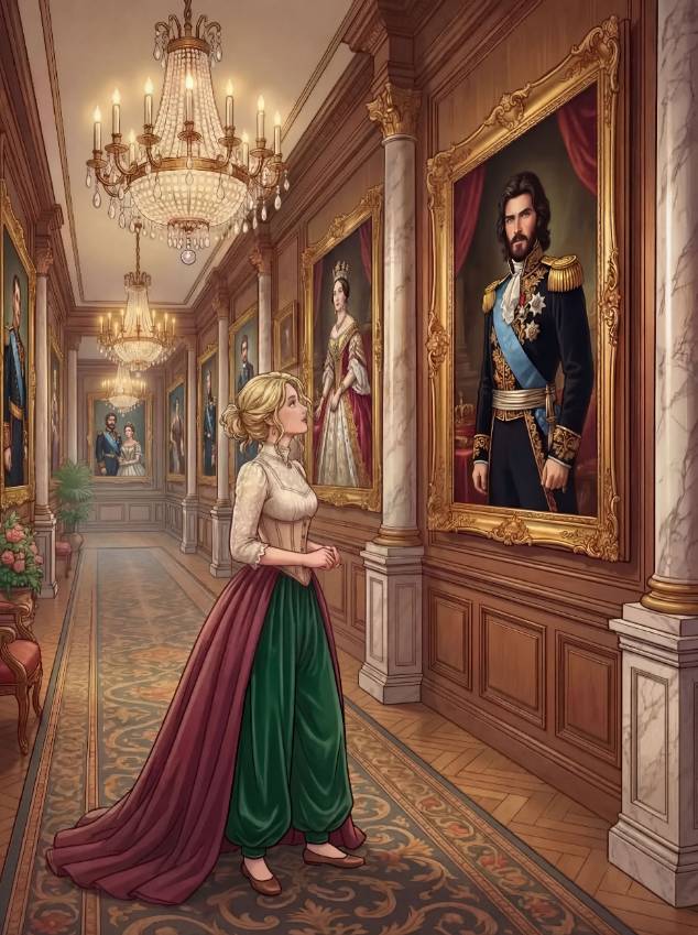 Стены украшали портреты в золотых рамах: царственная чета, учёный в круглых очках, балерина… И мама! Знакомое лицо неуловимо изменилось. Обычно мама смотрела устало, заботливо, строго – с любовью. Но сейчас на портрете была совсем другая женщина – с королевской осанкой и взглядом, полным силы.