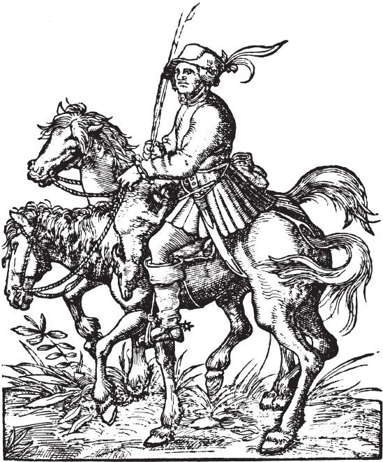 Рис. 8. Возвращение с охоты. Изображен охотник с коротким охотничьим мечом. Из книги Ander Theil des neuen Kunstbuchs (1580)