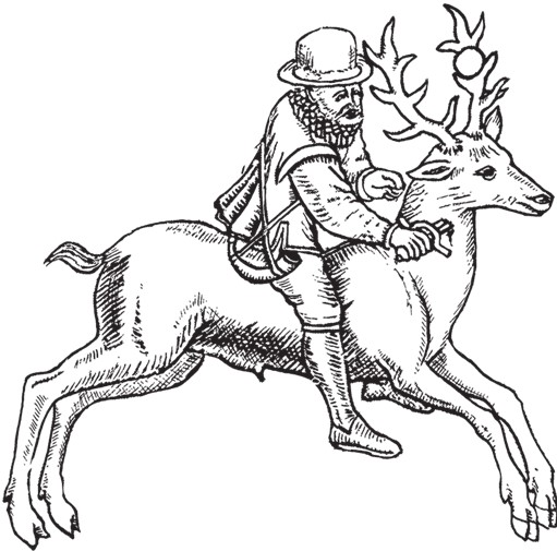 В приходской церкви в Уолтоне на Темзе находится гравированная медная дощечка, на которой запечатлен подвиг Джона Селвина, лесничего Отлендского парка. Во время охоты он перепрыгнул со своей лошади на спину оленя. Направив животное к королеве, он затем вонзил свою саблю ему в шею, так что тот замертво упал к ее ногам (рис. 9).