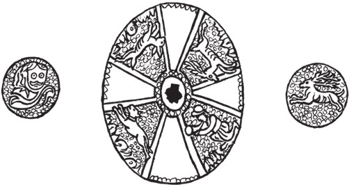 Рис. 11. Литой бронзовый ограничитель с гравировкой и украшение для гарды (оба конца) английского охотничьего кинжала. Ок. 1700 г.