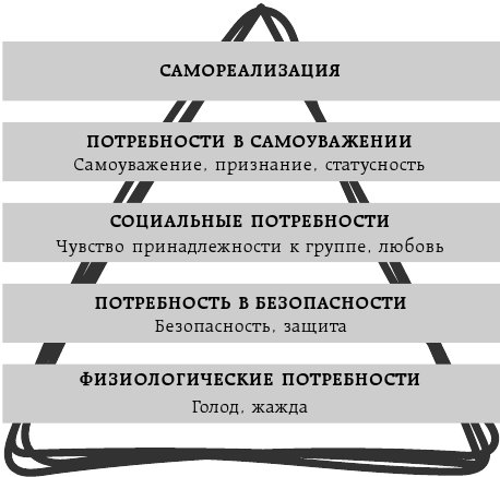 РИСУНОК 1.2. Иерархия потребностей Маслоу. Большинство из нас находятся где-то между третьим и четвертым уровнем. [Источник: Maslow, Abraham (1954). Motivation and Personality. New York: Harper. p. 236.]